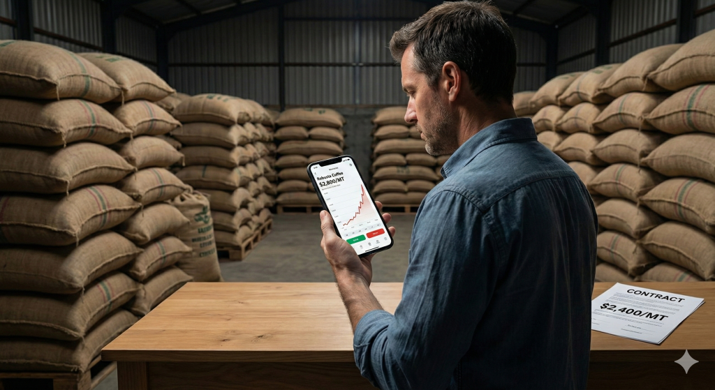 The Nightmare Scenario: You sign a contract for Robusta Coffee at $2,400/MT. A sudden frost in Brazil spikes the global price to $2,800/MT. Your supplier suddenly goes silent. They claim “logistics issues” or “crop failure,” but in reality, they are selling your coffee to someone else at the higher price. You are left with no stock and furious customers.